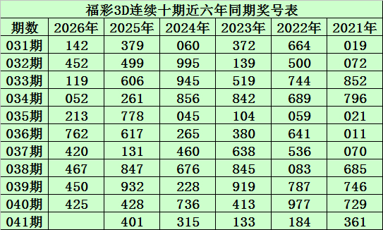 陈青峰福彩3D第2026041期保举: