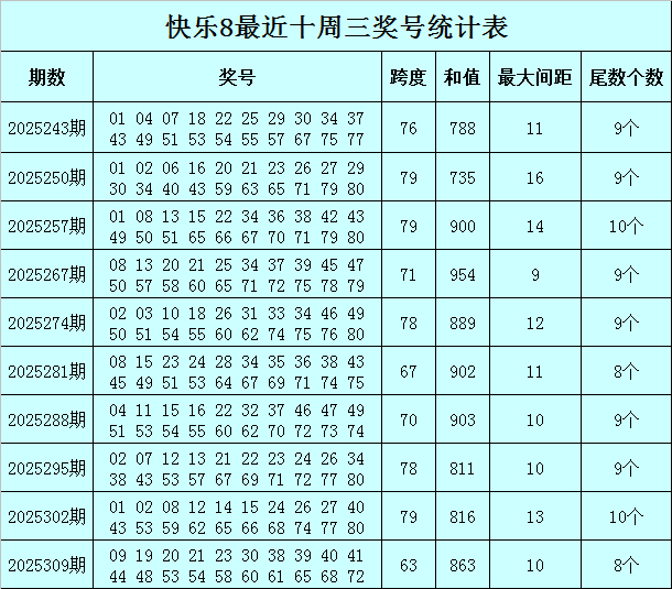 福彩气象8第2025309期(上周三)转头:09 19 20 21 23 30 38 39 40 41 44 48 53 54 58 60 61 65 68 72,其中奖号首尾间距为63,和值为863,最大间距为10,余数散布为:余数6、7包含0个号码,余数2、5包含1个号码,余数3、4包含2个号码,余数1、9包含3个号码,余数0、8包含4个号码。